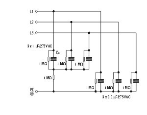 Je třífázový odrušovací prvek kondenzátorového typu, který se používá obvykle